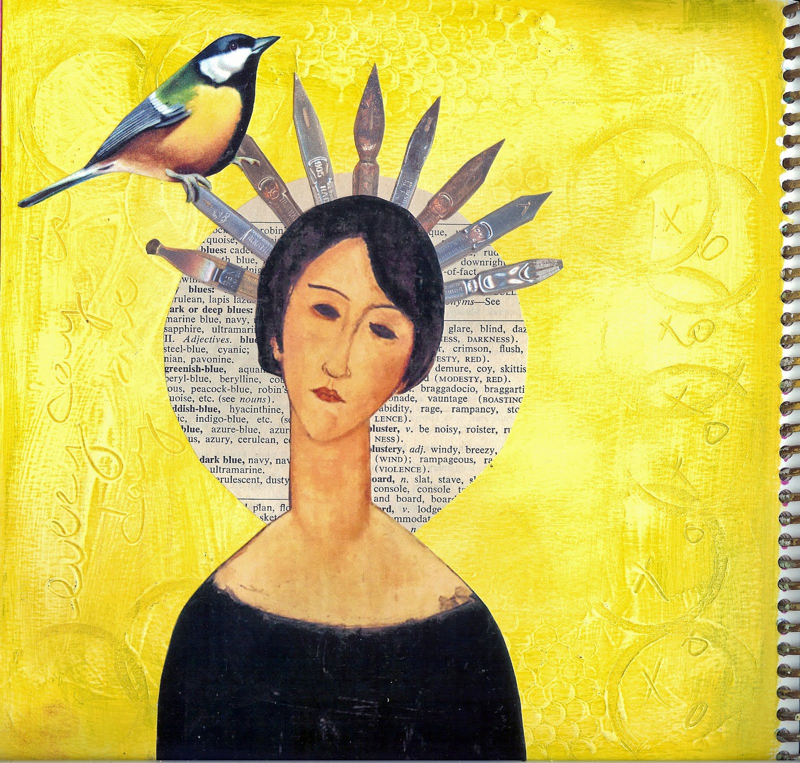 This is my last page of the journal. She is one of my favorite Botticelli images. He must have really loved women. The attention to detail in his work is amazing.So these are the last of the collage part of my new Art Journal. Today I start the text. Then on to adding more layers! This should be a fun journaling week.